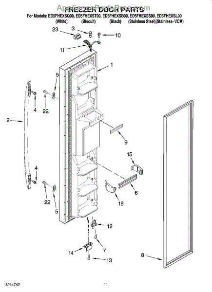 Parts for Whirlpool ED5FHEXST00: 07 - Freezer Door Parts