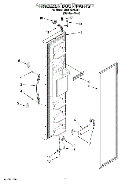 The Freezer Door Gasket is an OEM part for Whirlpool side-by-side and bottom-freezer refrigerators. As the seal that encloses cold air inside the freezer compartment, this gasket is critical for maintaining proper freezing temperatures.