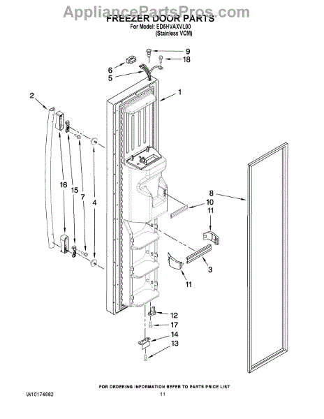 The Freezer Door Gasket is an OEM part for Whirlpool side-by-side and bottom-freezer refrigerators. As the seal that encloses cold air inside the freezer compartment, this gasket is critical for maintaining proper freezing temperatures.
