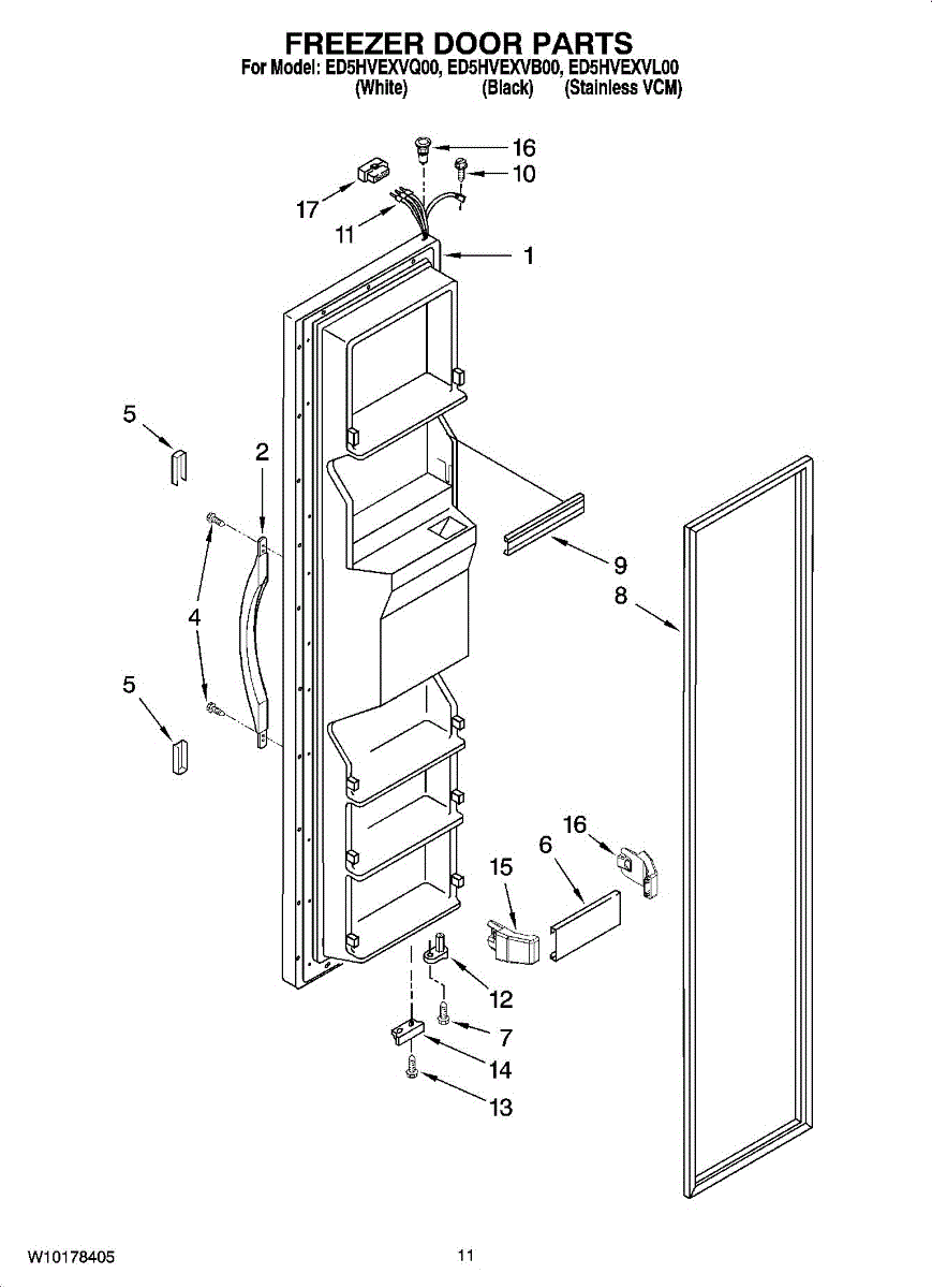 Freezer door gasket seals cold air inside your freezer compartment. Replace if torn, cracked, or door won't stay closed. Confirm fit with your model number.