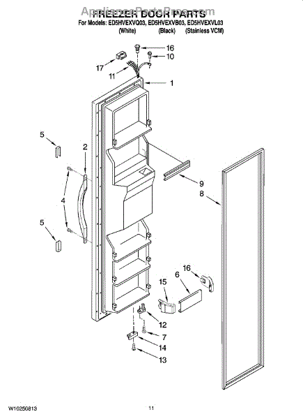 The Freezer Door Gasket is an OEM replacement part for Whirlpool refrigerators. It creates a tight insulating seal around the perimeter of the freezer door opening. The gasket helps maintain consistent sub-freezing temperatures inside by preventing cold air loss. Causes relate to natural compression fatigue over time, cracks developing with use, or accidental slicing/tears from sharp edges within the freezer. Symptoms of a compromised gasket include: