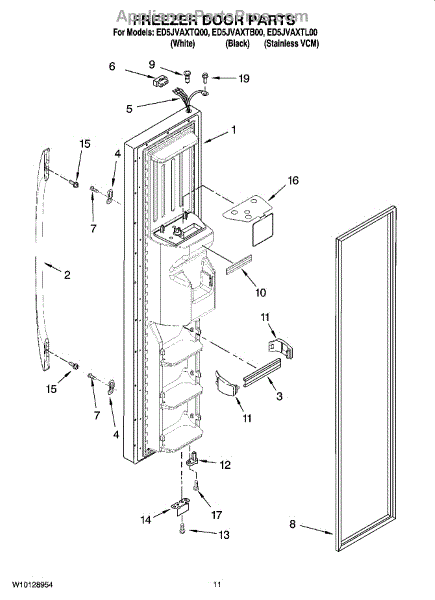 The Freezer Door Gasket is an OEM part for Whirlpool side-by-side and bottom-freezer refrigerators. As the seal that encloses cold air inside the freezer compartment, this gasket is critical for maintaining proper freezing temperatures.
