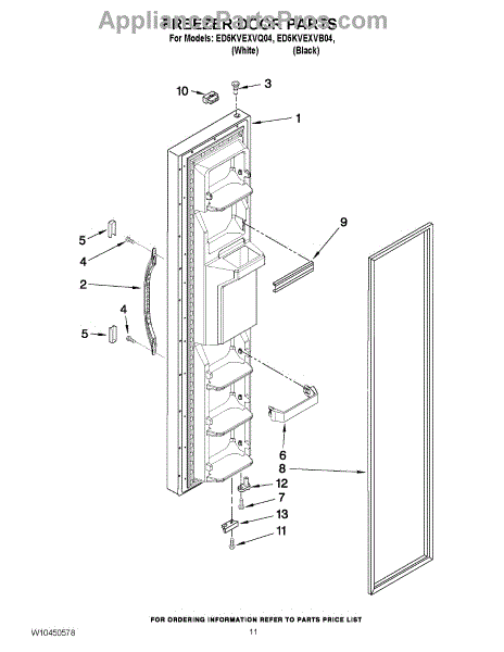 This freezer door shelf trim is the integrated retaining rail that secures items on the door bin. Replacing a cracked or missing rail restores a snug, reliable hold and keeps your freezer door storage tidy and usable.