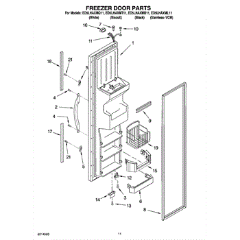The Freezer Door Gasket is an OEM replacement part for Whirlpool refrigerators. It creates a tight insulating seal around the perimeter of the freezer door opening. The gasket helps maintain consistent sub-freezing temperatures inside by preventing cold air loss. Causes relate to natural compression fatigue over time, cracks developing with use, or accidental slicing/tears from sharp edges within the freezer. Symptoms of a compromised gasket include: