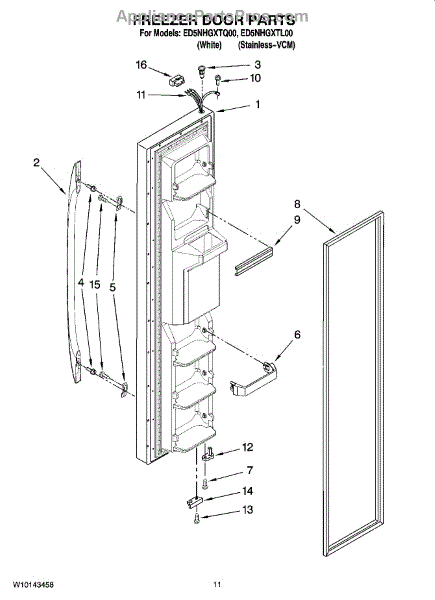 The Freezer Door Gasket is an OEM replacement part for Whirlpool refrigerators. It creates a tight insulating seal around the perimeter of the freezer door opening. The gasket helps maintain consistent sub-freezing temperatures inside by preventing cold air loss. Causes relate to natural compression fatigue over time, cracks developing with use, or accidental slicing/tears from sharp edges within the freezer. Symptoms of a compromised gasket include: