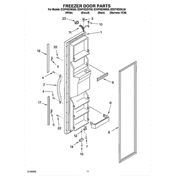 The Freezer Door Gasket is an OEM replacement part for Whirlpool refrigerators. It creates a tight insulating seal around the perimeter of the freezer door opening. The gasket helps maintain consistent sub-freezing temperatures inside by preventing cold air loss. Causes relate to natural compression fatigue over time, cracks developing with use, or accidental slicing/tears from sharp edges within the freezer. Symptoms of a compromised gasket include: