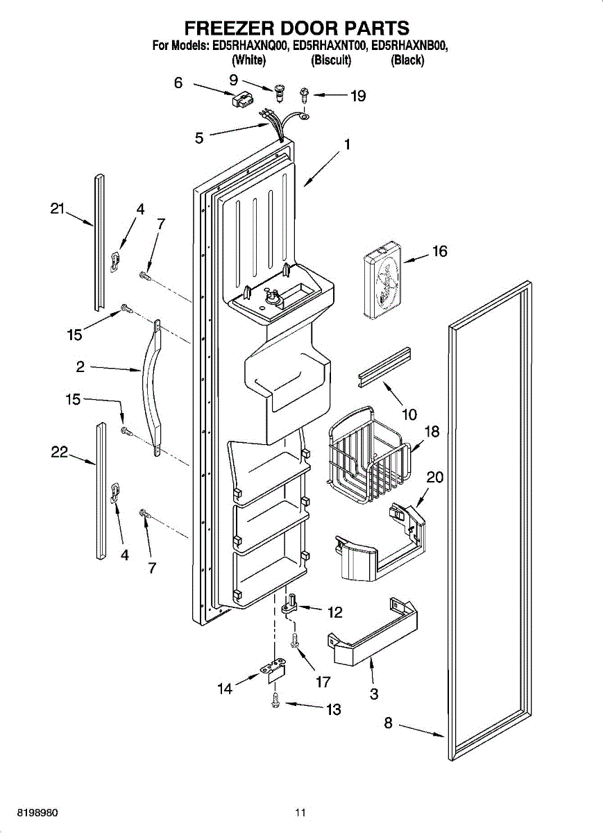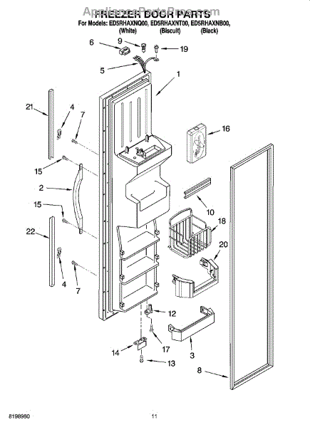 Parts for Whirlpool ED5RHAXNT00: 07 - Freezer Door Parts