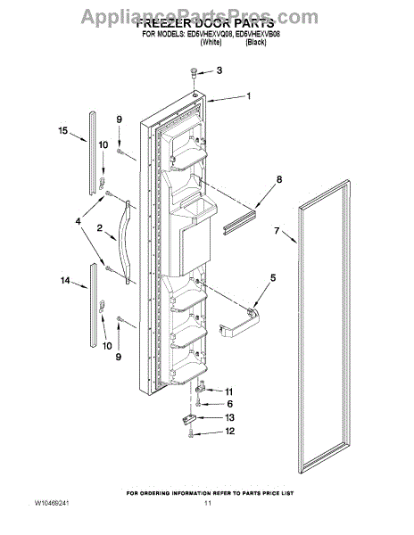The Freezer Door Gasket is an OEM replacement part for Whirlpool refrigerators. It creates a tight insulating seal around the perimeter of the freezer door opening. The gasket helps maintain consistent sub-freezing temperatures inside by preventing cold air loss. Causes relate to natural compression fatigue over time, cracks developing with use, or accidental slicing/tears from sharp edges within the freezer. Symptoms of a compromised gasket include: