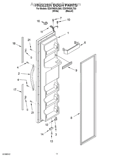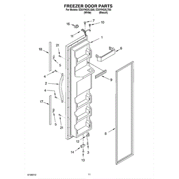 The Freezer Door Gasket is an OEM replacement part for Whirlpool refrigerators. It creates a tight insulating seal around the perimeter of the freezer door opening. The gasket helps maintain consistent sub-freezing temperatures inside by preventing cold air loss. Causes relate to natural compression fatigue over time, cracks developing with use, or accidental slicing/tears from sharp edges within the freezer. Symptoms of a compromised gasket include: