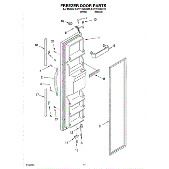 The Freezer Door Gasket is an OEM replacement part for Whirlpool refrigerators. It creates a tight insulating seal around the perimeter of the freezer door opening. The gasket helps maintain consistent sub-freezing temperatures inside by preventing cold air loss. Causes relate to natural compression fatigue over time, cracks developing with use, or accidental slicing/tears from sharp edges within the freezer. Symptoms of a compromised gasket include:
