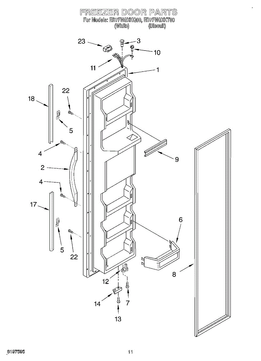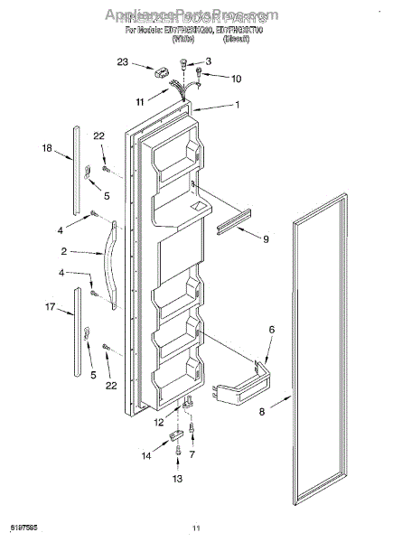 The Freezer Door Gasket is an OEM replacement part for Whirlpool refrigerators. It creates a tight insulating seal around the perimeter of the freezer door opening. The gasket helps maintain consistent sub-freezing temperatures inside by preventing cold air loss. Causes relate to natural compression fatigue over time, cracks developing with use, or accidental slicing/tears from sharp edges within the freezer. Symptoms of a compromised gasket include: