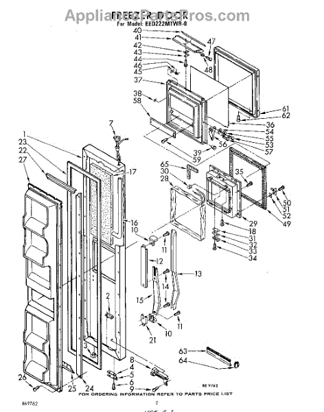 Parts for Whirlpool EED222MTWR0: 02 - Freezer Door Parts