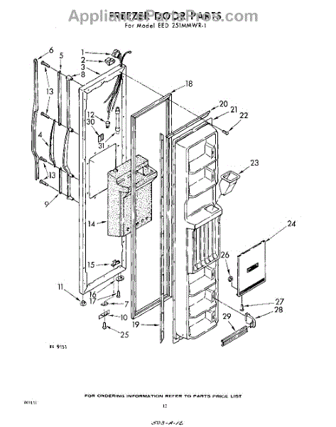 Parts for Whirlpool EED251MMWR1: 12 - Freezer Door Parts