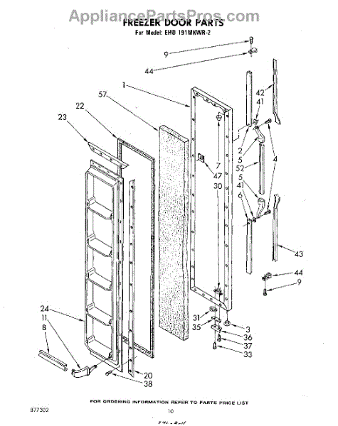 Parts for Whirlpool EHD191MKWR2: 10 - Freezer Door Parts