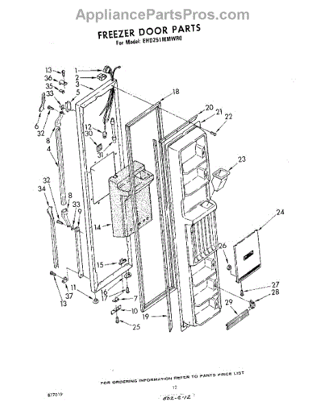 Parts for Whirlpool EHD251MMWR0: 12 - Freezer Door Parts