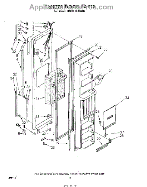 Parts for Whirlpool EHD251SMWR0: 12 - Freezer Door Parts