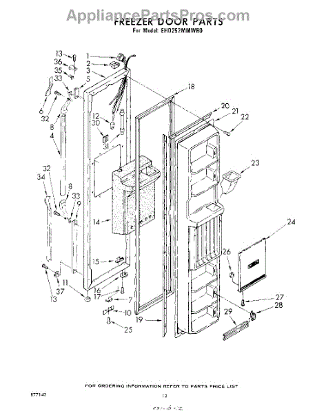 Parts for Whirlpool EHD252MMWR0: 12 - Freezer Door Parts