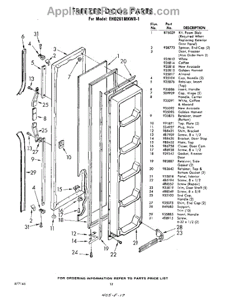 Parts for Whirlpool EHD261MKWR1: 12 - Freezer Door Parts