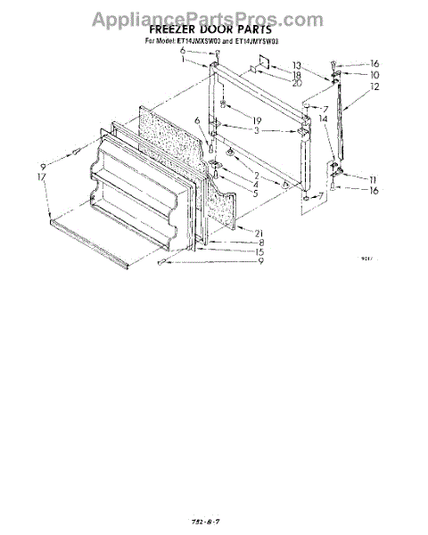 Parts for Whirlpool ET14JMXSW03: 06 - Freezer Door Parts