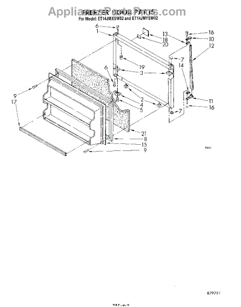 Parts for Whirlpool ET14JMYSW02: 06 - Freezer Door Parts