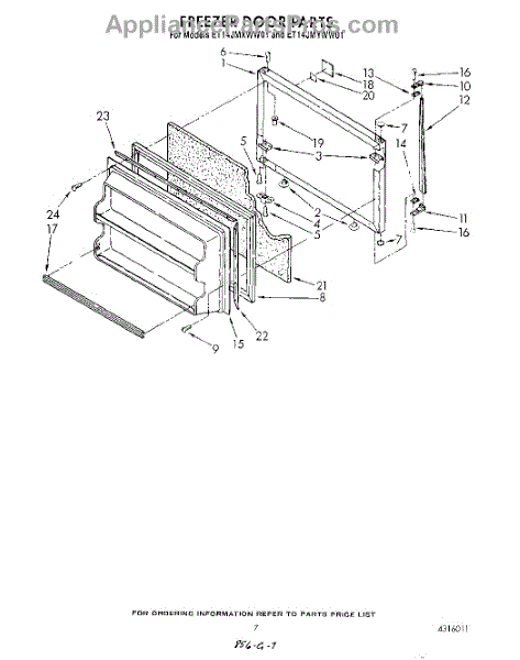 Parts for Whirlpool ET14JMYWW01: 06 - Freezer Door Parts