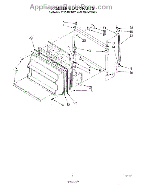 Parts for Whirlpool ET16JMXSW03: 06 - Freezer Door Parts
