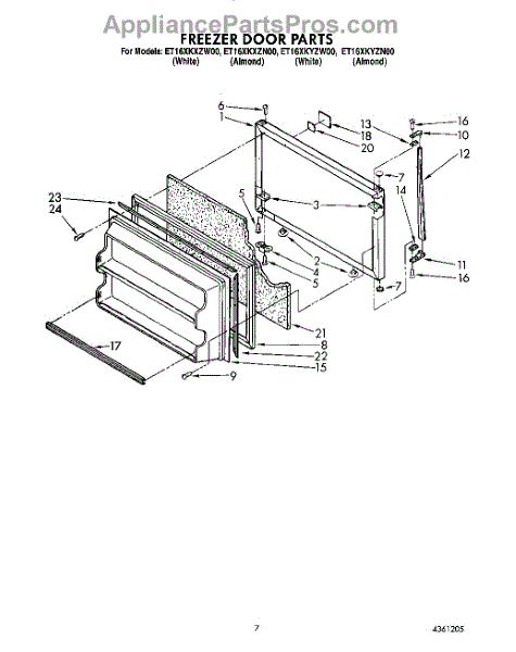 Parts for Whirlpool ET16XKXZN00: 06 - Freezer Door Parts