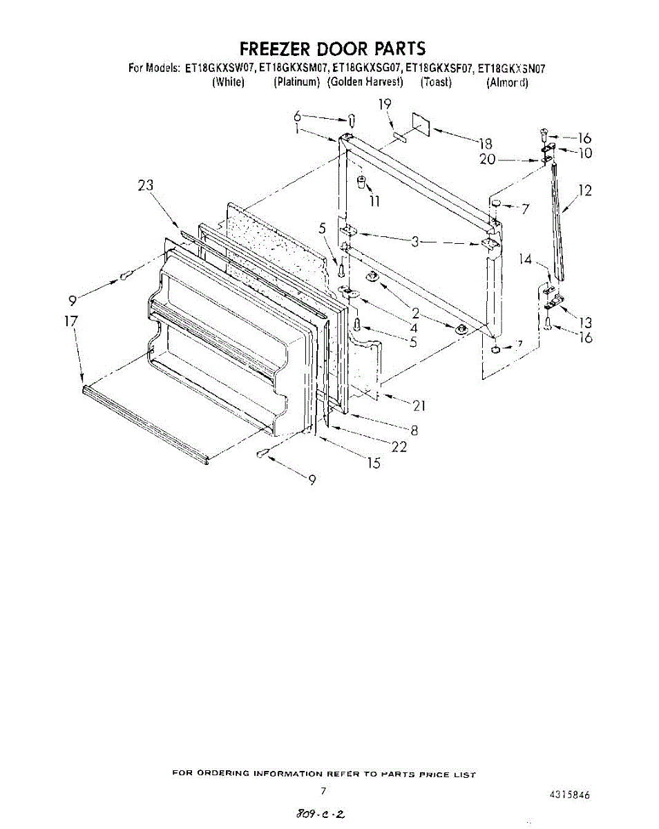 This screw is used to secure the handle end cap to the center of the door. The screw size measures 8-18 x 1/2 inches.
