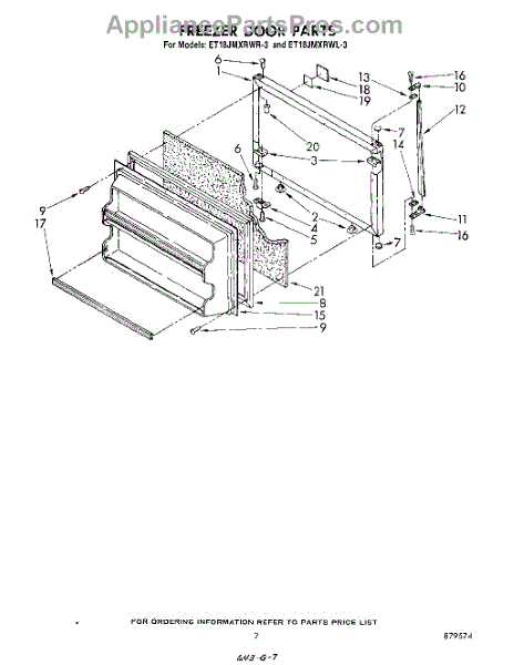 Parts for Whirlpool ET18JMXRWR3: 06 - Freezer Door Parts