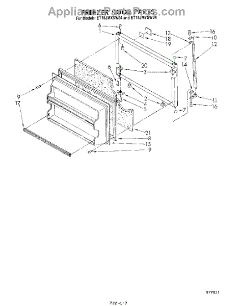 Parts for Whirlpool ET18JMYSW04: 06 - Freezer Door Parts