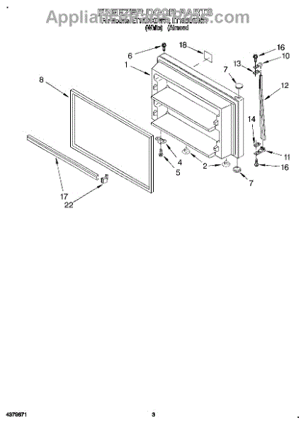 Parts for Whirlpool ET18ZKXDW01: 02 - Freezer Door Parts