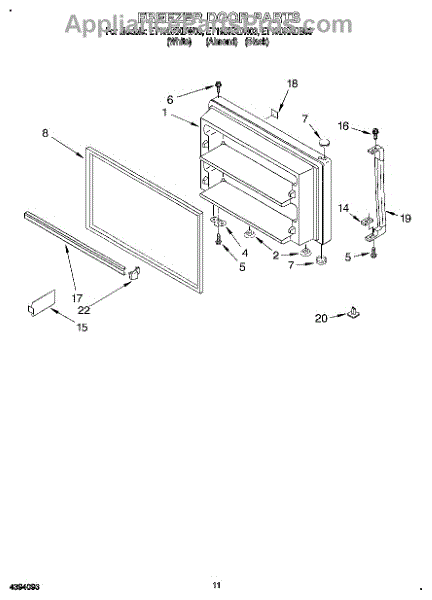 Parts for Whirlpool ET19DKXDB03: 06 - Freezer Door, Lit / Optional Parts