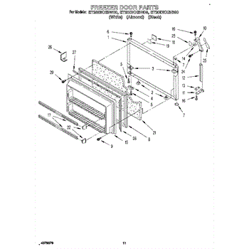 This freezer door gasket seals the door to the cabinet to keep cold air in and humid air out. Replacing a worn gasket restores a proper seal, helping maintain temperature and reducing frost and condensation around the door.