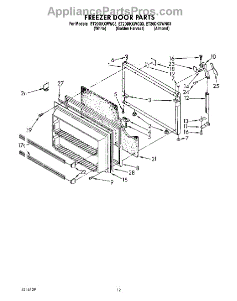 Parts for Whirlpool ET20DKXWG03: 07 - Freezer Door Parts