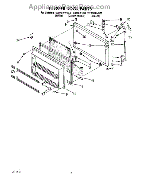 Parts for Whirlpool ET20DKXWN00: 07 - Freezer Door Parts