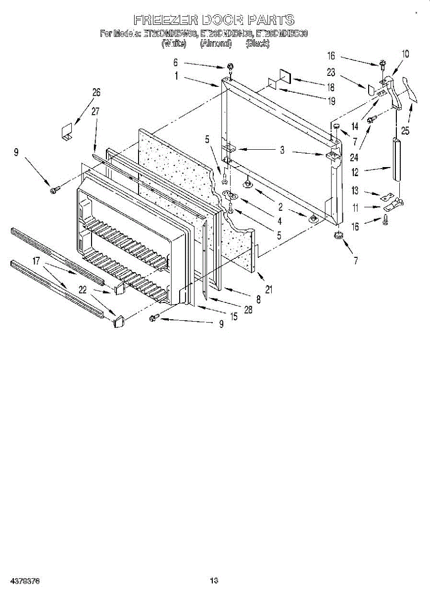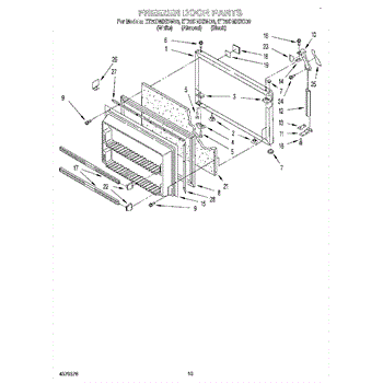 This freezer door gasket seals the door to the cabinet to keep cold air in and humid air out. Replacing a worn gasket restores a proper seal, helping maintain temperature and reducing frost and condensation around the door.