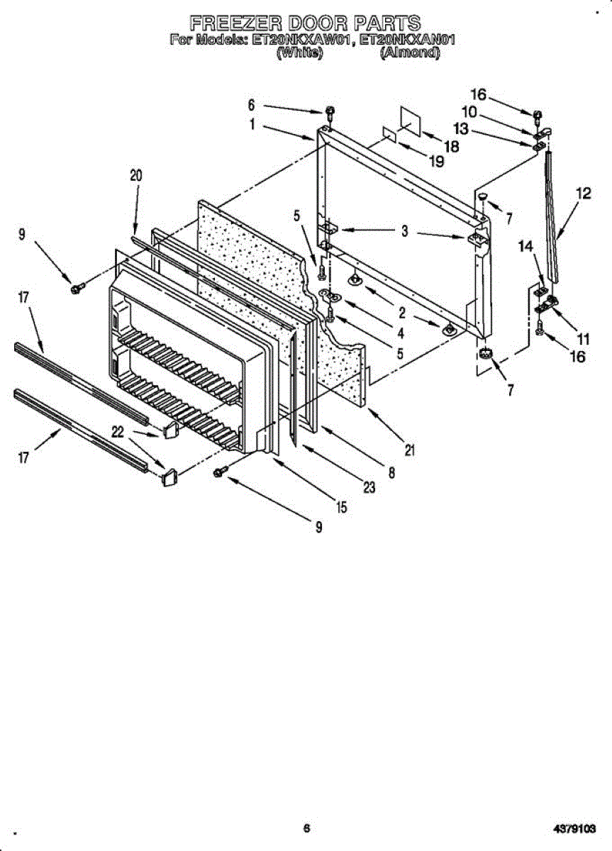 Parts for Whirlpool ET20NKXAW0: Freezer Door Parts
