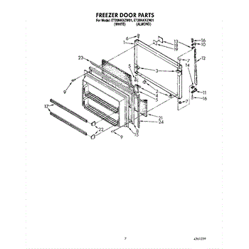 This freezer door gasket seals the door to the cabinet to keep cold air in and humid air out. Replacing a worn gasket restores a proper seal, helping maintain temperature and reducing frost and condensation around the door.