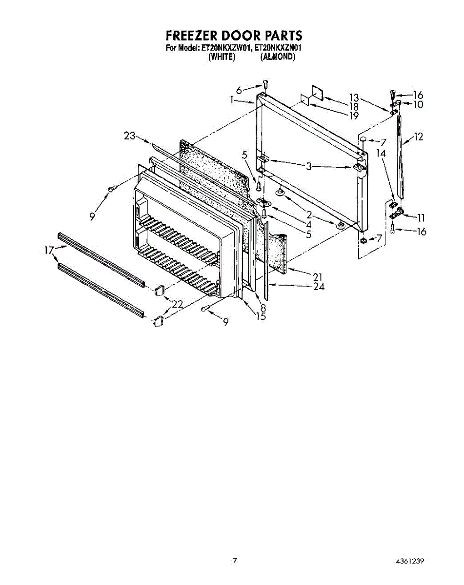 This freezer door gasket seals the door to the cabinet to keep cold air in and humid air out. Replacing a worn gasket restores a proper seal, helping maintain temperature and reducing frost and condensation around the door.