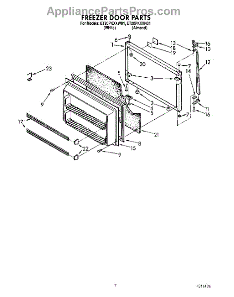 This freezer door gasket seals the door to the cabinet to keep cold air in and humid air out. Replacing a worn gasket restores a proper seal, helping maintain temperature and reducing frost and condensation around the door.