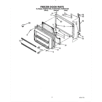 This freezer door gasket seals the door to the cabinet to keep cold air in and humid air out. Replacing a worn gasket restores a proper seal, helping maintain temperature and reducing frost and condensation around the door.
