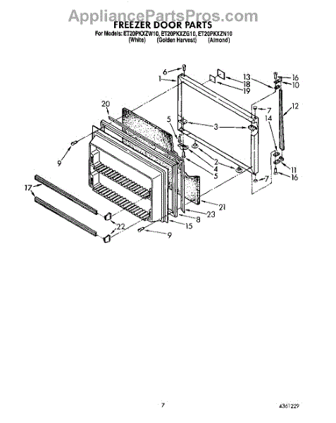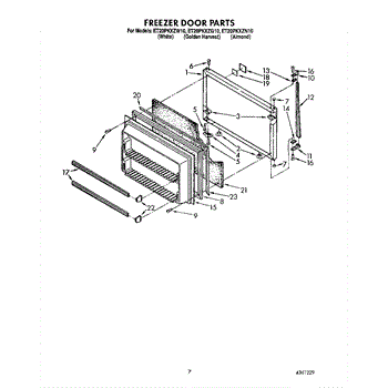 This freezer door gasket seals the door to the cabinet to keep cold air in and humid air out. Replacing a worn gasket restores a proper seal, helping maintain temperature and reducing frost and condensation around the door.