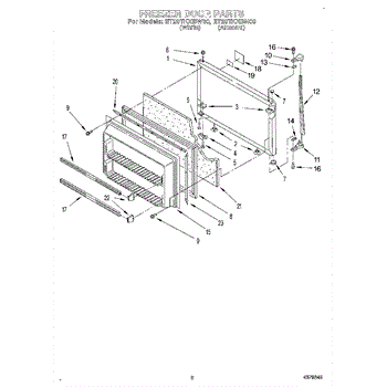 This freezer door gasket seals the door to the cabinet to keep cold air in and humid air out. Replacing a worn gasket restores a proper seal, helping maintain temperature and reducing frost and condensation around the door.