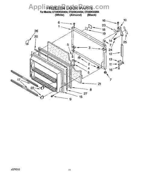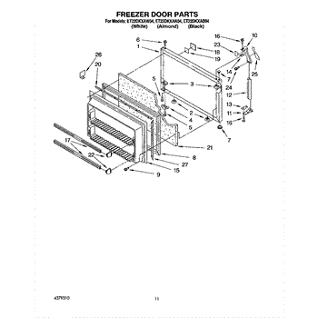 This freezer door gasket seals the door to the cabinet to keep cold air in and humid air out. Replacing a worn gasket restores a proper seal, helping maintain temperature and reducing frost and condensation around the door.
