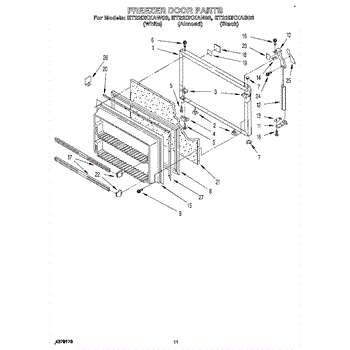 This freezer door gasket seals the door to the cabinet to keep cold air in and humid air out. Replacing a worn gasket restores a proper seal, helping maintain temperature and reducing frost and condensation around the door.
