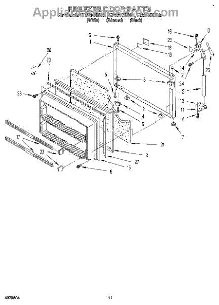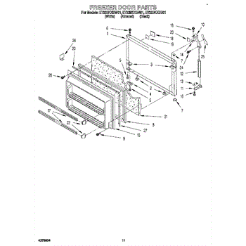 This freezer door gasket seals the door to the cabinet to keep cold air in and humid air out. Replacing a worn gasket restores a proper seal, helping maintain temperature and reducing frost and condensation around the door.