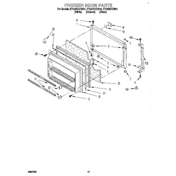 This freezer door gasket seals the door to the cabinet to keep cold air in and humid air out. Replacing a worn gasket restores a proper seal, helping maintain temperature and reducing frost and condensation around the door.