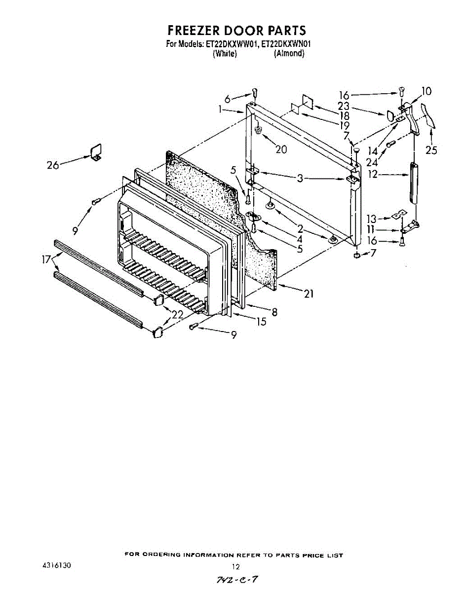 Parts for Whirlpool ET22DKXWW01: 08 - Freezer Door Parts