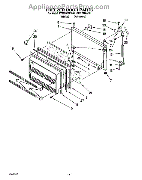 This freezer door gasket seals the door to the cabinet to keep cold air in and humid air out. Replacing a worn gasket restores a proper seal, helping maintain temperature and reducing frost and condensation around the door.