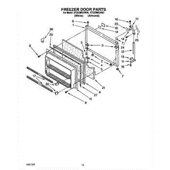 This freezer door gasket seals the door to the cabinet to keep cold air in and humid air out. Replacing a worn gasket restores a proper seal, helping maintain temperature and reducing frost and condensation around the door.